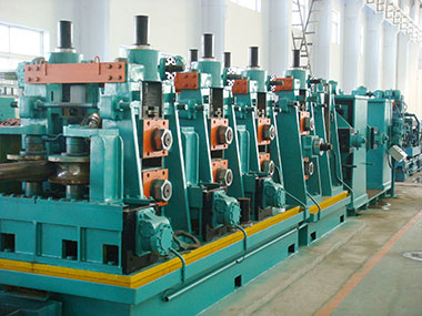 Raw material (Steel Strip) in form of a coil is uncoiled and feed into forming section passing through the equipment of entry section. Entry section enables the pipe mill to run continuously by using strip joining and accumulation equipment. Pipe is formed in round shape passing through a set of driven and idler rollers of forming section before welding. In welding section pipe is longitudinally welded by using high frequency induction welding method. Outside bead is removed and formed in shape of scrap. The weld seam is ironed and pipe passes through the cooling section. In sizing section, pipe is formed to specified size and converted into specified shape. After sizing, pipe is cut to specified length by using flying cutting equipment and delivered in collecting troughs passing through run out conveyor.