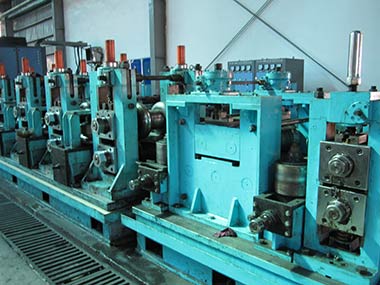 Raw material (Steel Strip) in form of a coil is uncoiled and feed into forming section passing through the equipment of entry section. Entry section enables the pipe mill to run continuously by using strip joining and accumulation equipment. Pipe is formed in round shape passing through a set of driven and idler rollers of forming section before welding. In welding section pipe is longitudinally welded by using high frequency induction welding method. Outside bead is removed and formed in shape of scrap. The weld seam is ironed and pipe passes through the cooling section. In sizing section, pipe is formed to specified size and converted into specified shape. After sizing, pipe is cut to specified length by using flying cutting equipment and delivered in collecting troughs passing through run out conveyor.